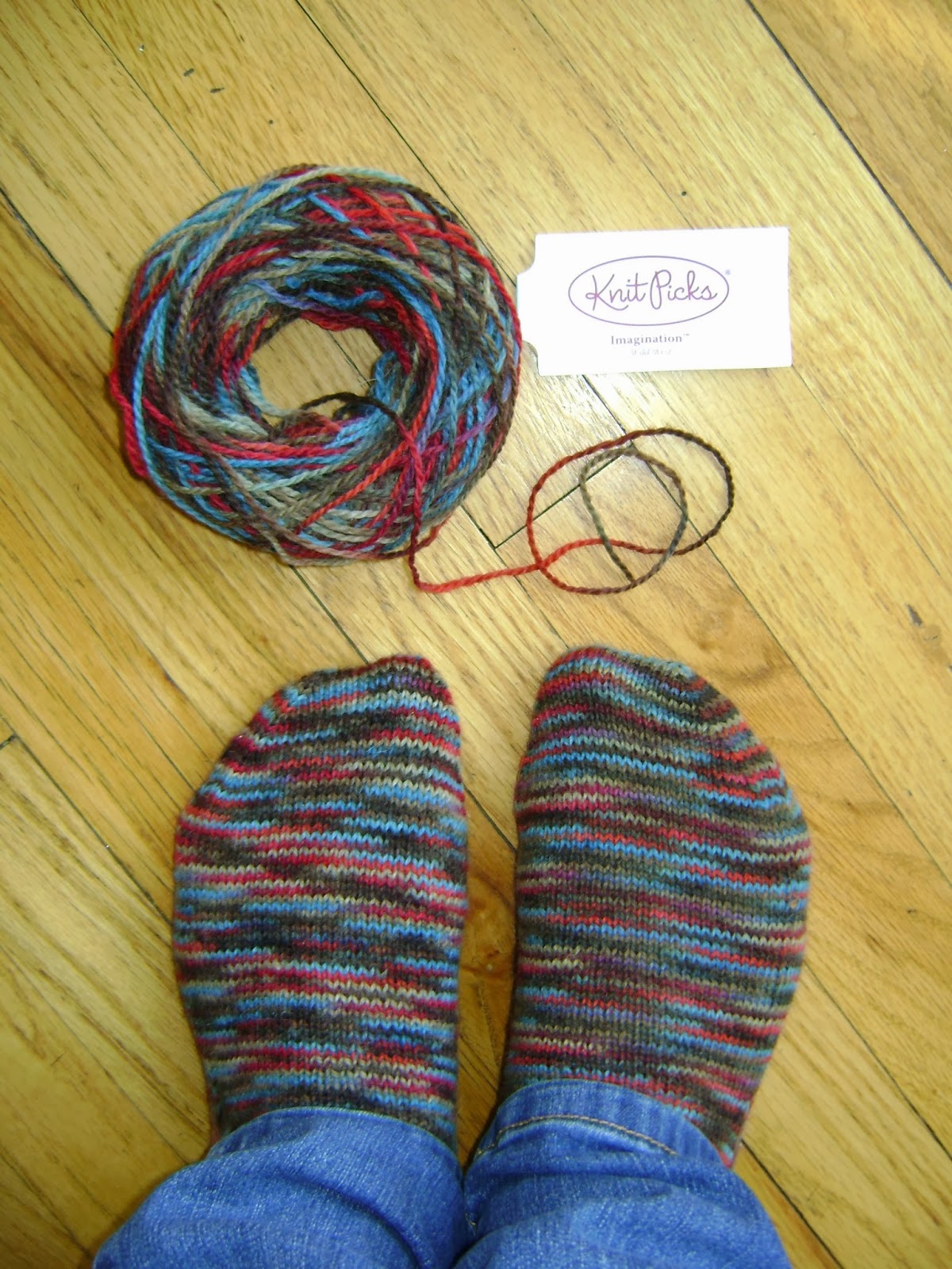 This is the first decent pair of socks I have made....ever! I've tried so many patterns, I can't tell you. Maybe it's me....maybe I'm reading the pattern wrong....maybe I've picked the wrong yarn...maybe I ate something bad! Ok, maybe not that last one. I finally found a great pattern! Whipped up in Knit Picks Wild West yarn and size 2 needles produced this lovely pair. However, the yarn is not very cushy, so, if you're like me and don't like to wear shoes around the house, these are not practical.